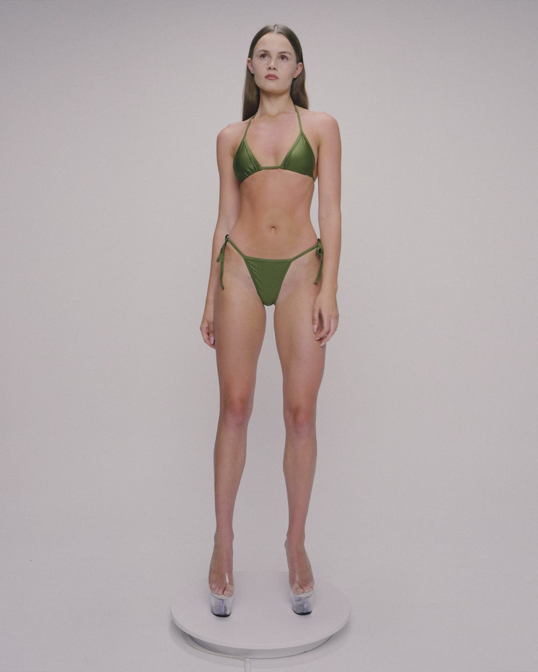 Our thong bottom is adjustable in all the right ways. Designed to sit low, mid, or high waisted with elasticated sides that stay secure without digging in. Front coverage increases with size - the bigger the size, the wider the front - so you can choose your size based on the coverage you want. The back cut lifts and hugs, staying put in and out of the water.